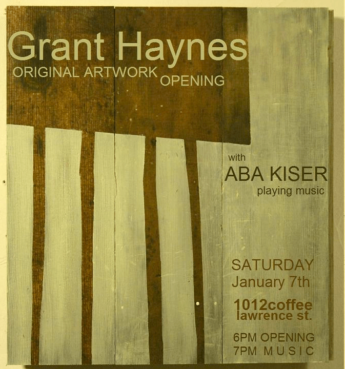 Re/collection: A gathering with paintings by Grant and music by Aba Please see this show’s Artist Statement in “About” link. Share this: Click to share on Facebook (Opens in new window) Facebook Click to share on X (Opens in new window) X Like Loading... Related Posted on December 30, 2011January 9, 2012